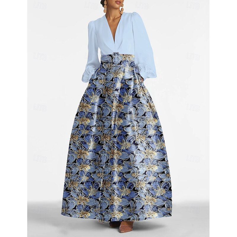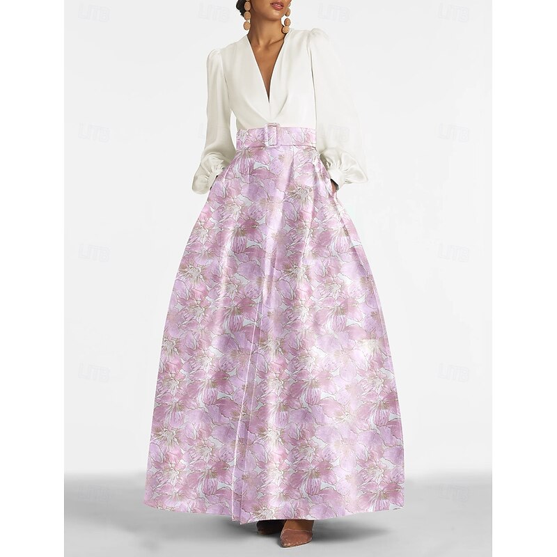 $149.99 - Jacquard Brocade Floral A-Line Evening Gown Dress Formal Wedding Guest Floor Length Long Sleeve V Neck Belt Nylon with Slit Pocket 2025. Shop for cheap A-Line Evening Dresses online? Buy at lightinthebox.com on sale today!