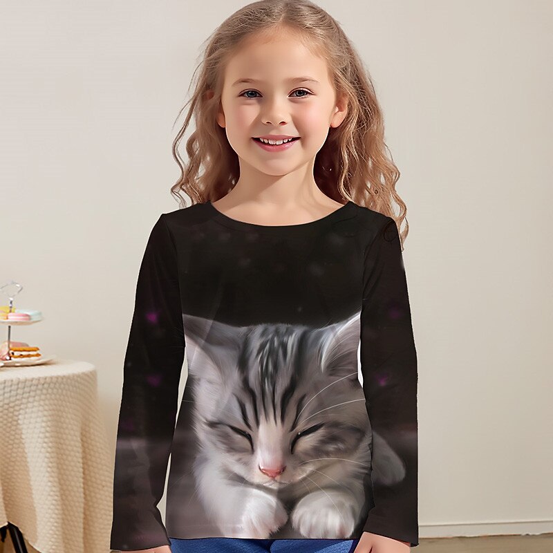This Girls' 3D Cat Tee Shirt Long Sleeve 3D Print Spring Fall Active Fashion Cute Polyester Kids 3-12 Years Crew Neck Outdoor Casual Daily Regular Fit combines elegant design with practical functionality. Every detail has been carefully considered to ensure you get the finest possible experience. The finest construction means this product will serve you well for years to come.