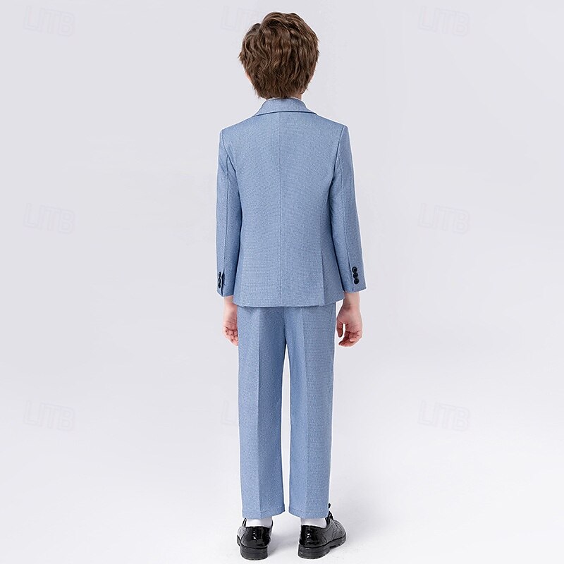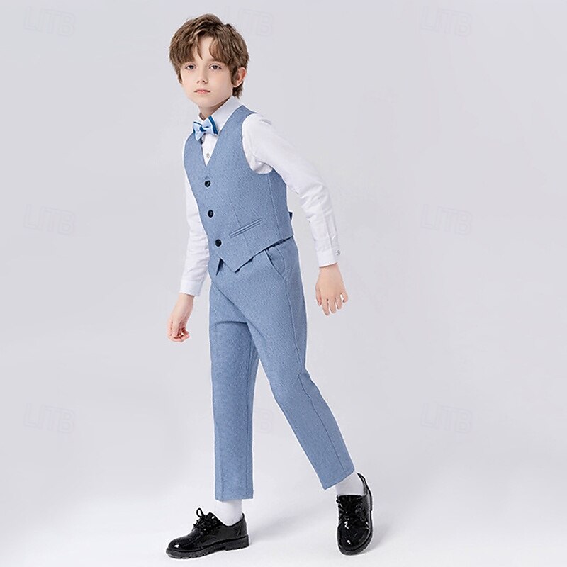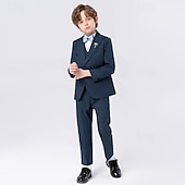 Why Choose 5 Pieces Ring Bearer Suit Boys Kids Suit Formal Suit Blazer & Vest & Pants & Brooch & Tie Formal Party Valentines Fashion Cool Solid Color Pocket Navy Blue Light Blue Polyester?