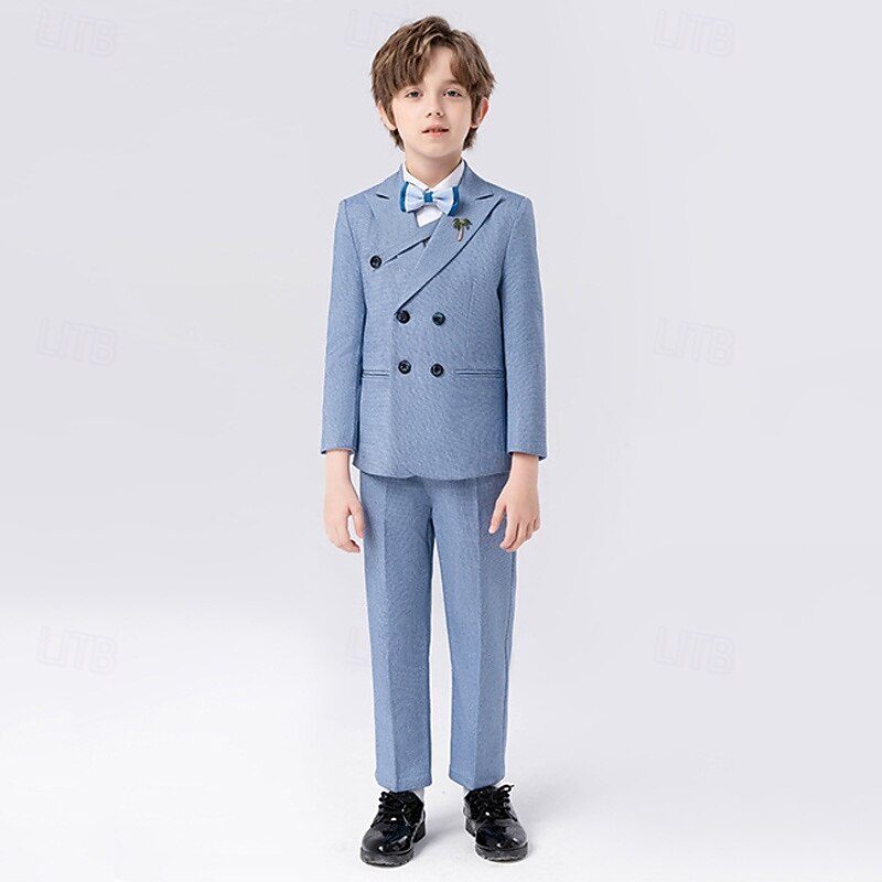 This 5 Pieces Ring Bearer Suit Boys Kids Suit Formal Suit Blazer & Vest & Pants & Brooch & Tie Formal Party Valentines Fashion Cool Solid Color Pocket Navy Blue Light Blue Polyester combines elegant design with practical functionality. Every detail has been carefully considered to ensure you get the best possible experience. The outstanding construction means this product will serve you well for years to come.