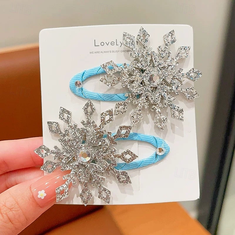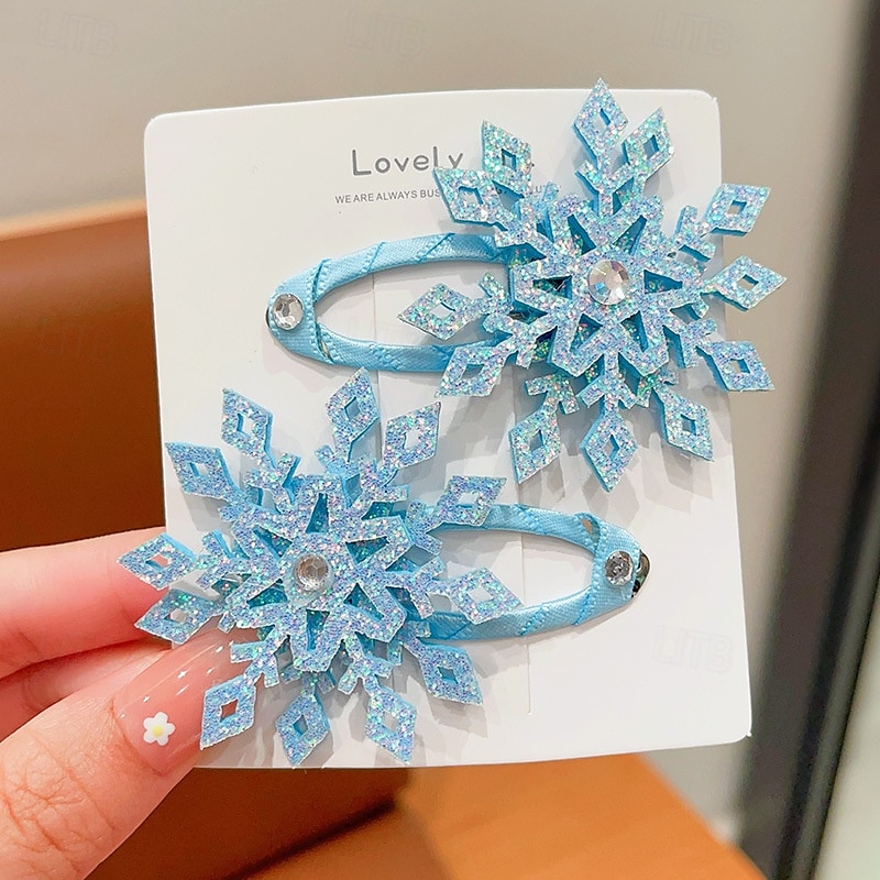 sizzling ! 2 Pieces Kids Girls' Hair Accessories Active Sweet Party Birthday Snowflake Pink Blue