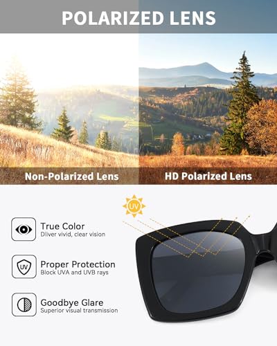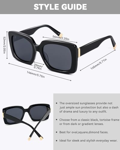 Origin: ImportedOversized Sunglasses for Women - You'll be reaching for your new go-to accessory that pulls any look together with oversiezed square sunglasses! Make a grand entrance in these premium oversized sun glasses and add a little glam to any look.Polarized UV400 Protection - Our darker 1.0mm triacetate lenses block 100% of UV rays and protect your eyes from harmful UV rays. Whether you're shopping, driving, or just enjoying a day at the beach, it will rebuild a clear vision for you.Trendy Tortoise Woman Sunglasses - different from fragile plastic frames, acetate material is always used by high-end brands. Their glossy finish and smooth feel make them ideal for those who love to add color to their style. Besides, if you're someone with sensitive skin, these frames are ideal for you.Affordable Luxury - If you get tired of losing or breaking down high-end brand sunglasses, why not try Mose Romano? Our women's sunglasses are made of a handcrafted acetate frame, high-impact-resistant polarized lenses, and solid three-barrel metal hinges, striking the excellent balance between comfort and strength.Worry-free After-Sale Service: Free Return of 30 Days Guarantee for our polarized sunglasses. It is a risk-free choice for you to buy Mose Romano women's sunglasses. Perfect for everyday use. top-grade materials and excellent craftsmanship ensure long-lasting durability.
