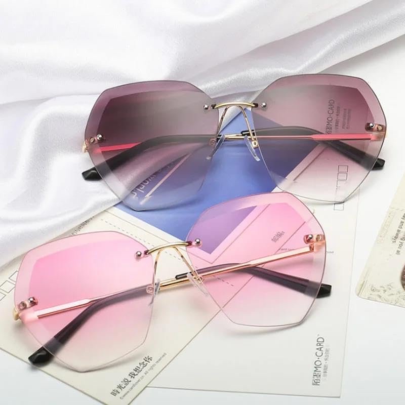 sizzling ! Vintage Rimless Pilot Sunglasses Women Men Retro Cutting Lens Gradient Sun Glasses Female UV400