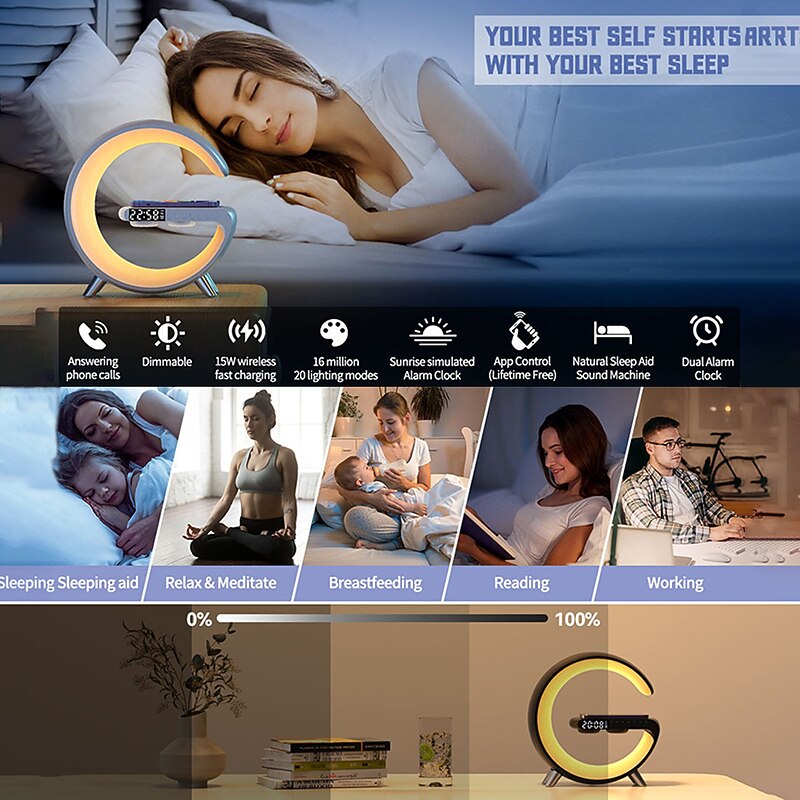 Why Choose Rhythm RGBIC Light Bar LED Smart Light Bluetooth Speaker Alarm Clock Dimmable Wake Up Light Alarm Clocks Wireless Charging Table Lamp?