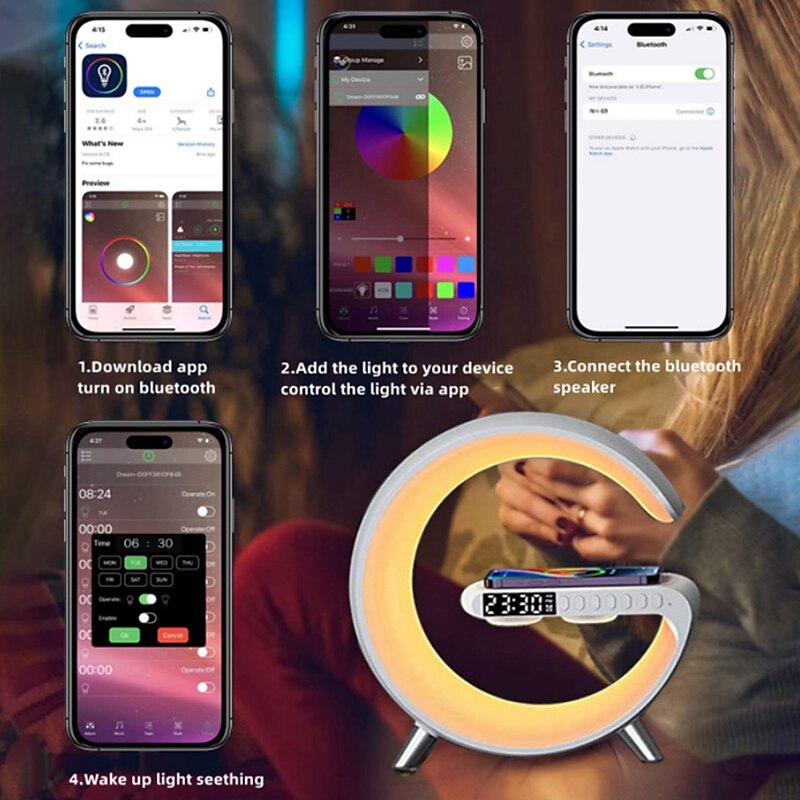 This Rhythm RGBIC Light Bar LED Smart Light Bluetooth Speaker Alarm Clock Dimmable Wake Up Light Alarm Clocks Wireless Charging Table Lamp combines elegant design with practical functionality. Every detail has been carefully considered to ensure you get the ultimate possible experience. The finest construction means this product will serve you well for years to come.