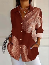 This Women's Shirt Blouse Graphic Daily fashionable Retro Vintage Long Sleeve 3/4 Length Sleeve Shirt Collar Regular Tops Daily Holiday Going out Buttons Maroon Black Red Brown Spring Fall Winter Spring combines elegant design with practical functionality. Every detail has been carefully considered to ensure you get the best possible experience. The premium construction means this product will serve you well for years to come.