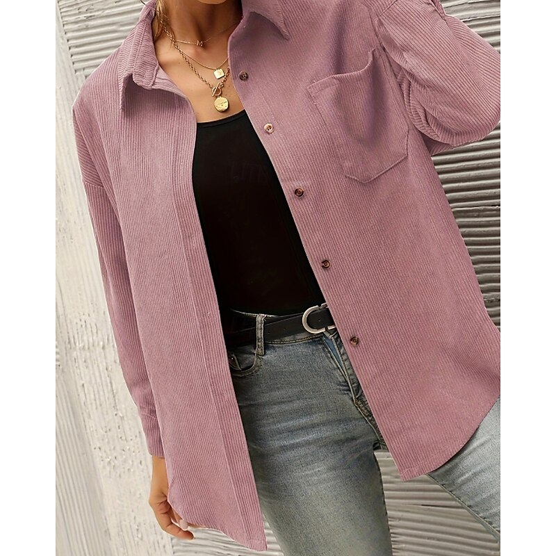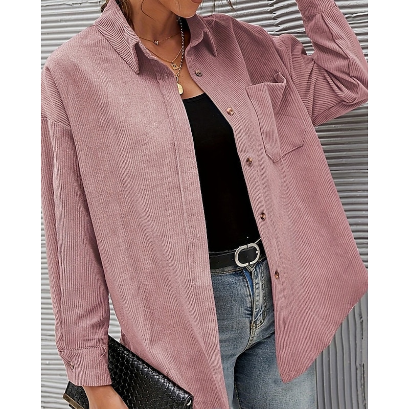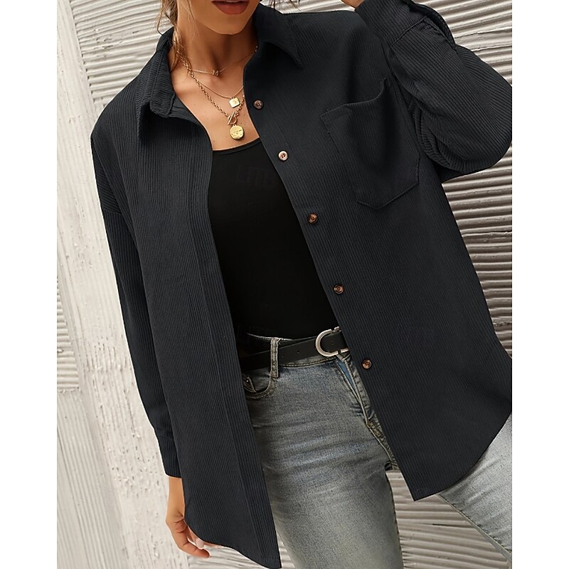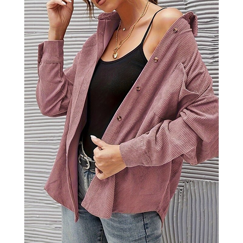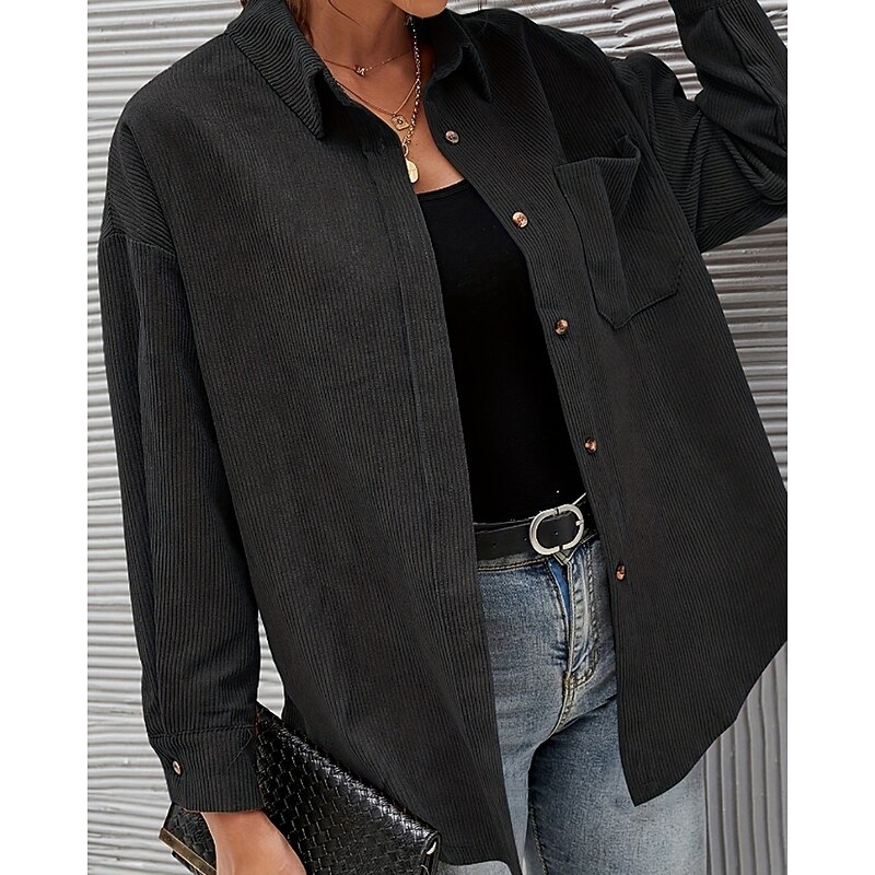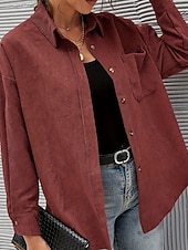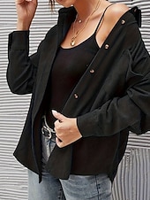 sizzling ! Women's Shirt Jacket Shacket supple Pocket Buttons Casual Plain Outdoor Vacation Going out Weekend Single Breasted Regular Turndown Regular Fit Long Sleeve Outerwear Black Pink Wine Fall Winter