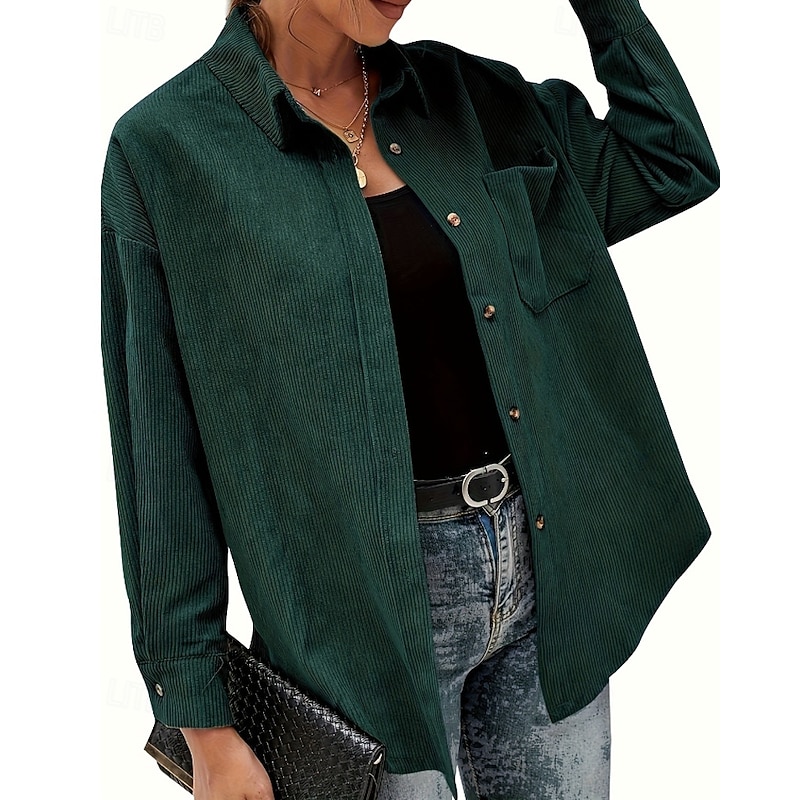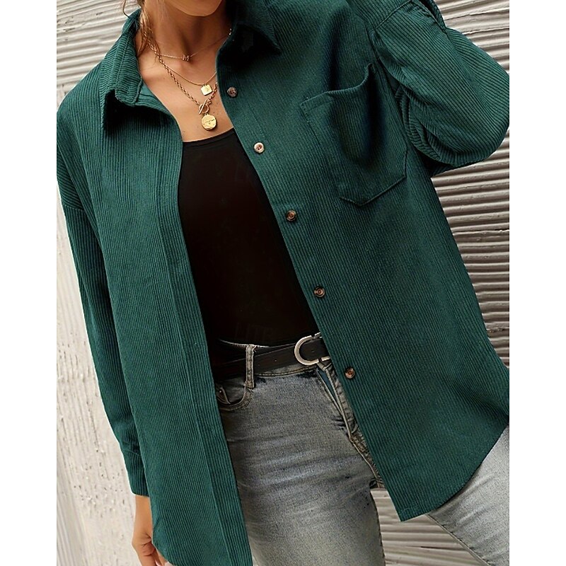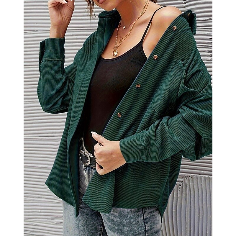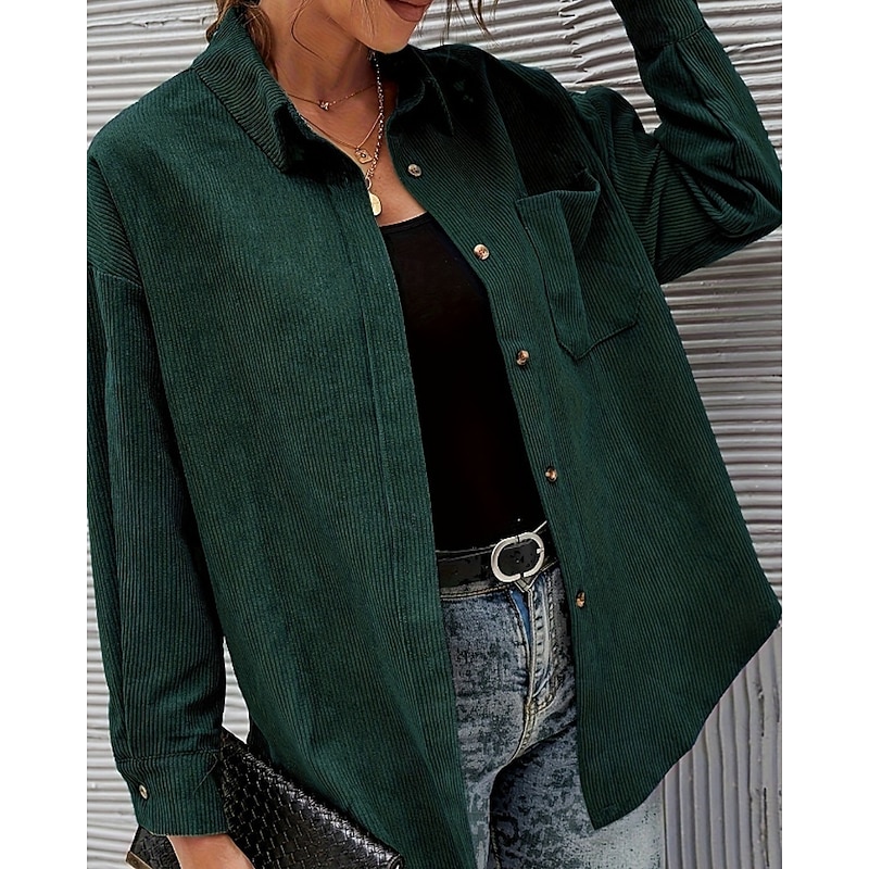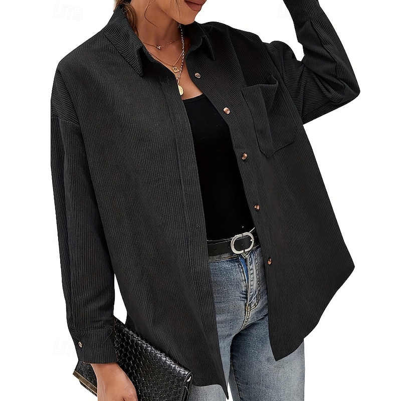 sizzling ! Women's Shirt Jacket Shacket supple Pocket Buttons Casual Plain Outdoor Vacation Going out Weekend Single Breasted Regular Turndown Regular Fit Long Sleeve Outerwear Black Pink Wine Fall Winter