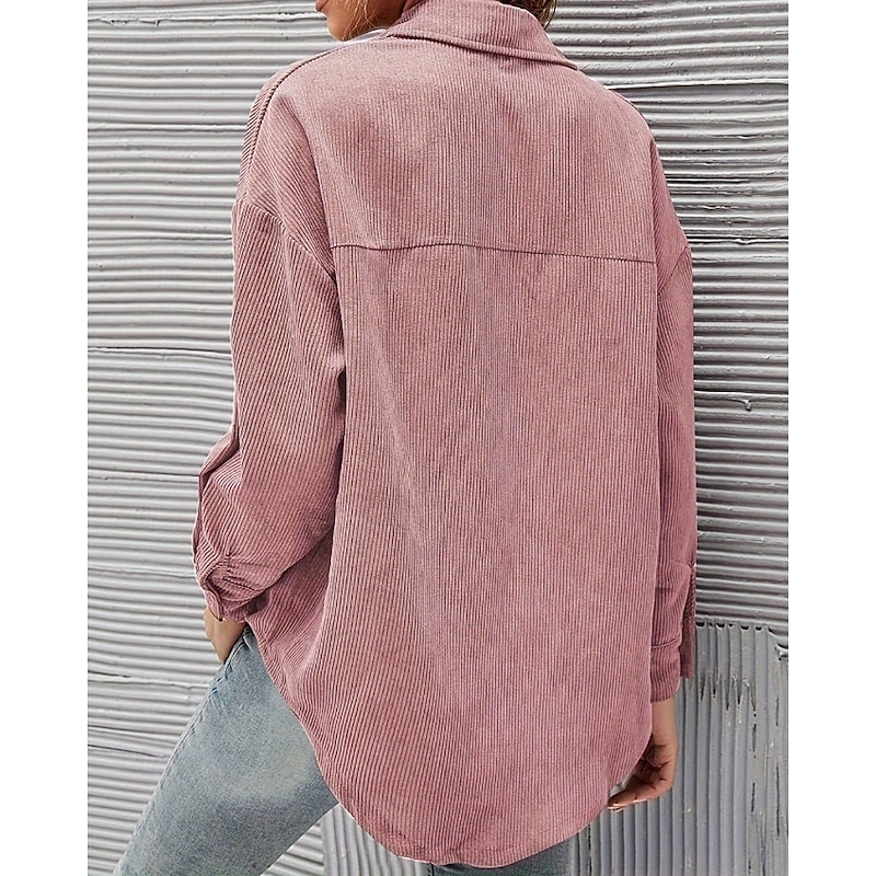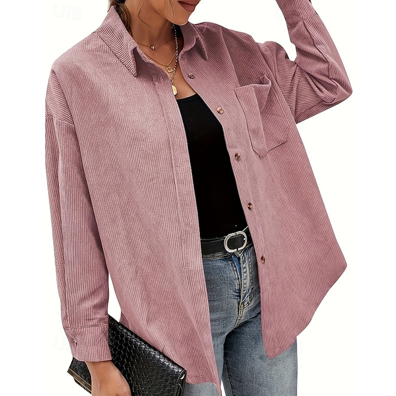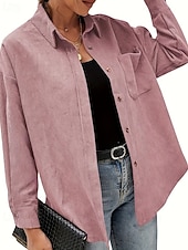 More information about Women's Shirt Jacket Shacket cushy Pocket Buttons Casual Plain Outdoor Vacation Going out Weekend Single Breasted Regular Turndown Regular Fit Long Sleeve Outerwear Black Pink Wine Fall Winter