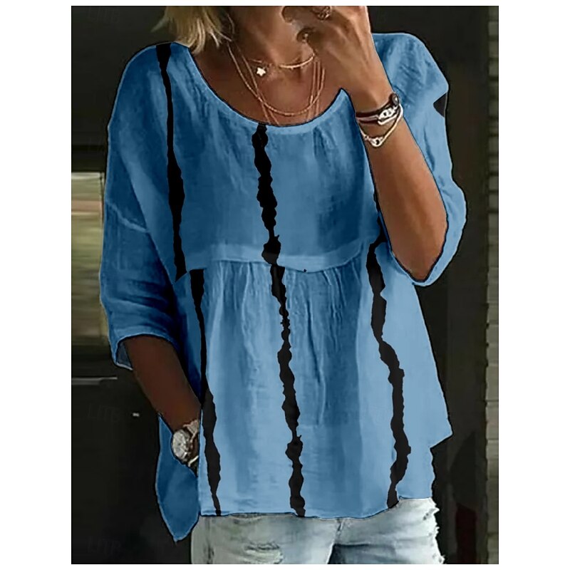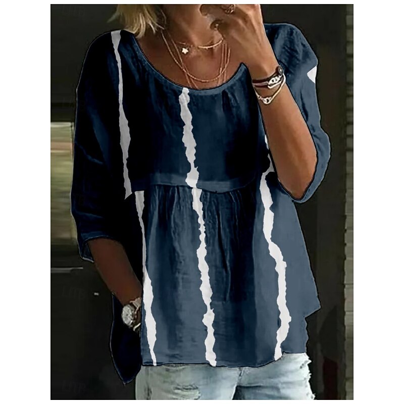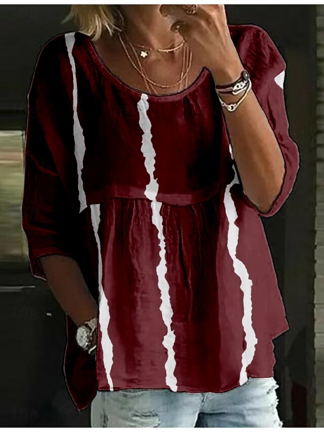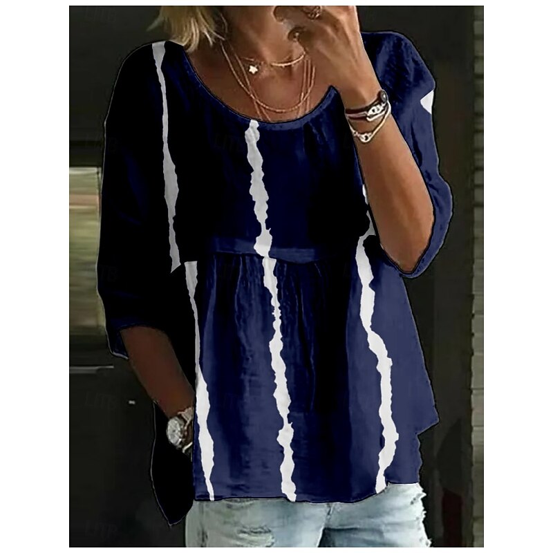 sizzling ! Women's Blouse Tie Dye contemporary 3/4 Length Sleeve Crew Neck Regular Tops Daily Holiday Print White Pink Wine Navy Blue Royal Blue Summer