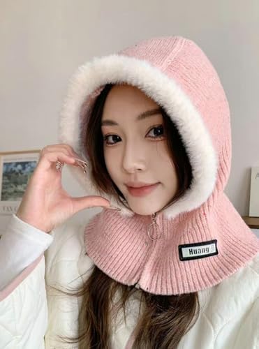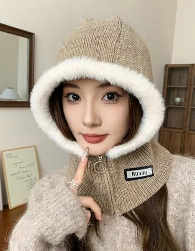 Hooded Scarf for Women Men Zip-up Balaclava Thickened toasty Knitted Hat with Ear Protection 2-in-1 Neck Gaiter Fall Winter