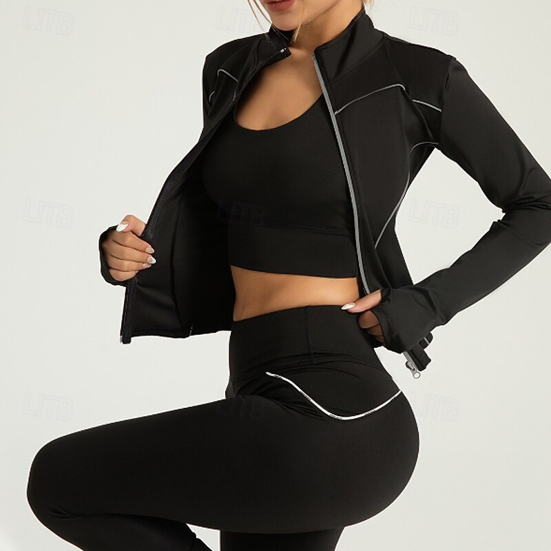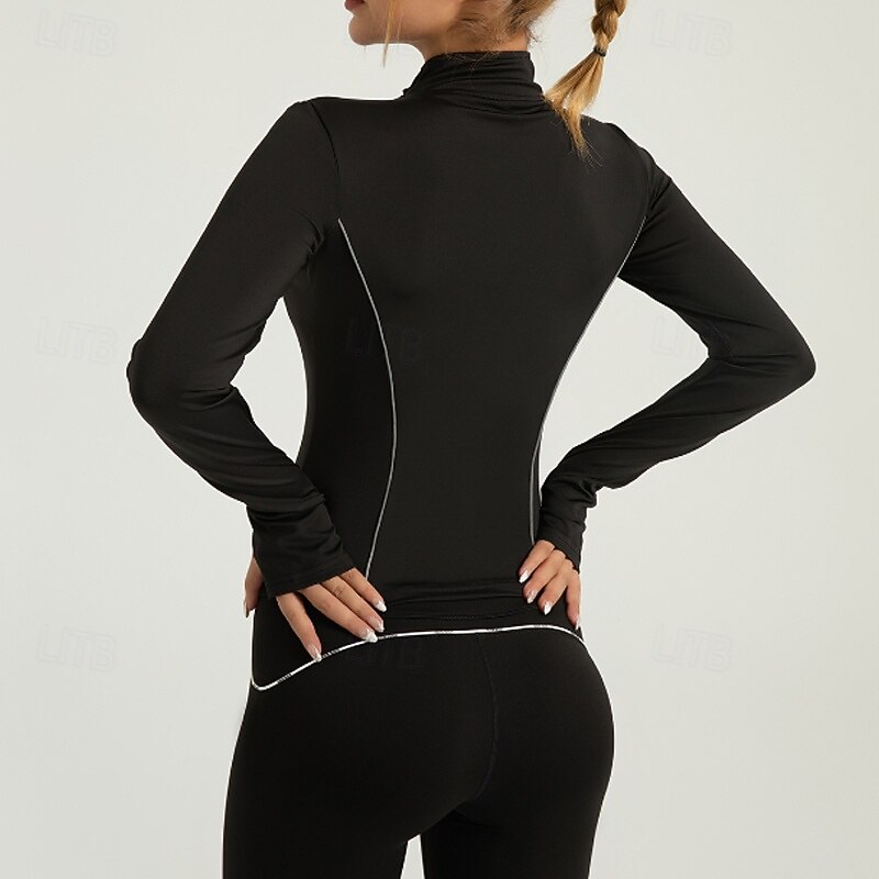 More information about Women's Running T-Shirt Zipper Long Sleeve Tee Tshirt Casual Athleisure Color Block speedy Dry Breathable Gym Workout Walking Jogging Sportswear Activewear Black White Red