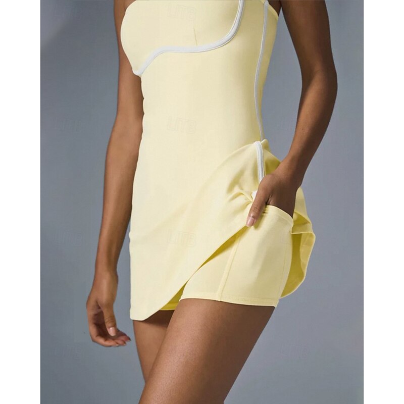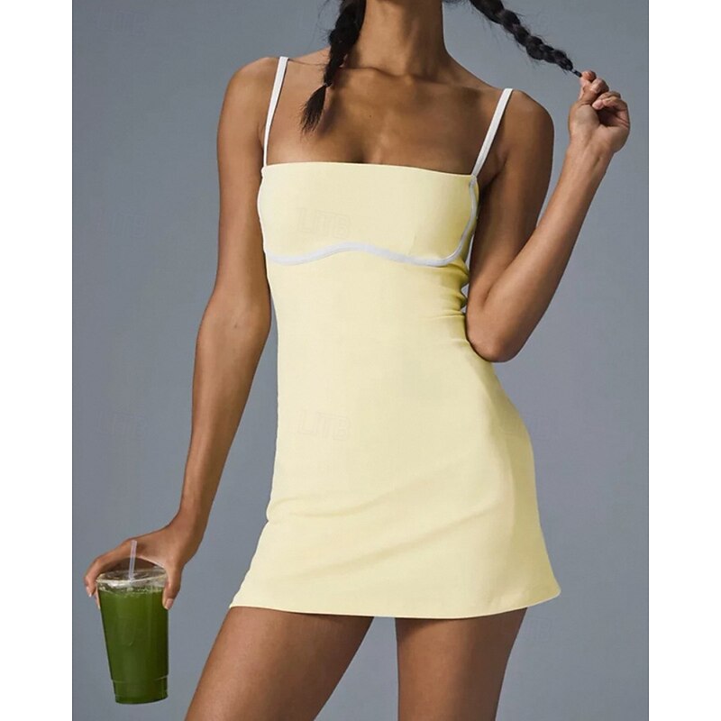 $42.99 - Women's Patchwork Tennis Dress with Built in Shorts and Bra Sports Dress Sleeveless Contrast Binding Quick Dry Moisture Wicking Tennis Golf Pickleball Spaghetti Strap Dress Light Yellow Black Pink 2025. Shop for cheap Women's Tennis Dress online? Buy at lightinthebox.com on sale today!