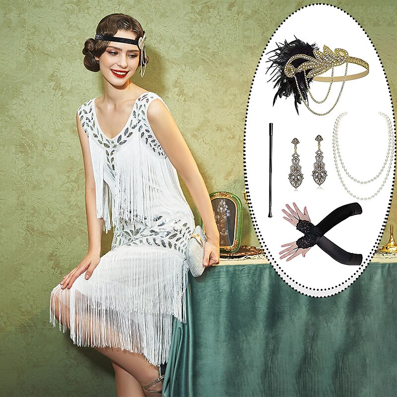 $56.99 - Set with Flapper Dress Feather Headband Faux Pearl Necklace Long Opera Gloves Cigarette Holder Earings Women's Roaring 20s 1920s Outfits Cocktail Dress Gatsby Flapper Girl Masquerade Party Costumes 2025. Shop for cheap Outfits online? Buy at lightinthebox.com on sale today!