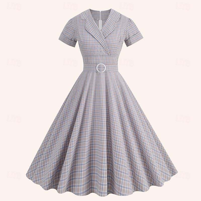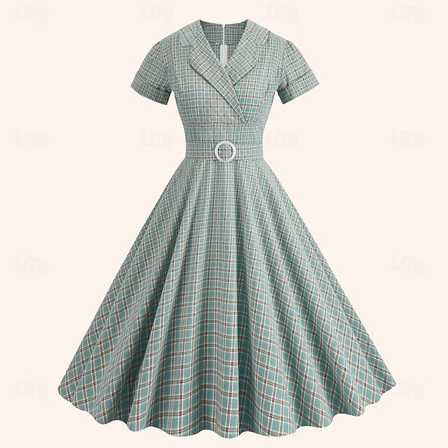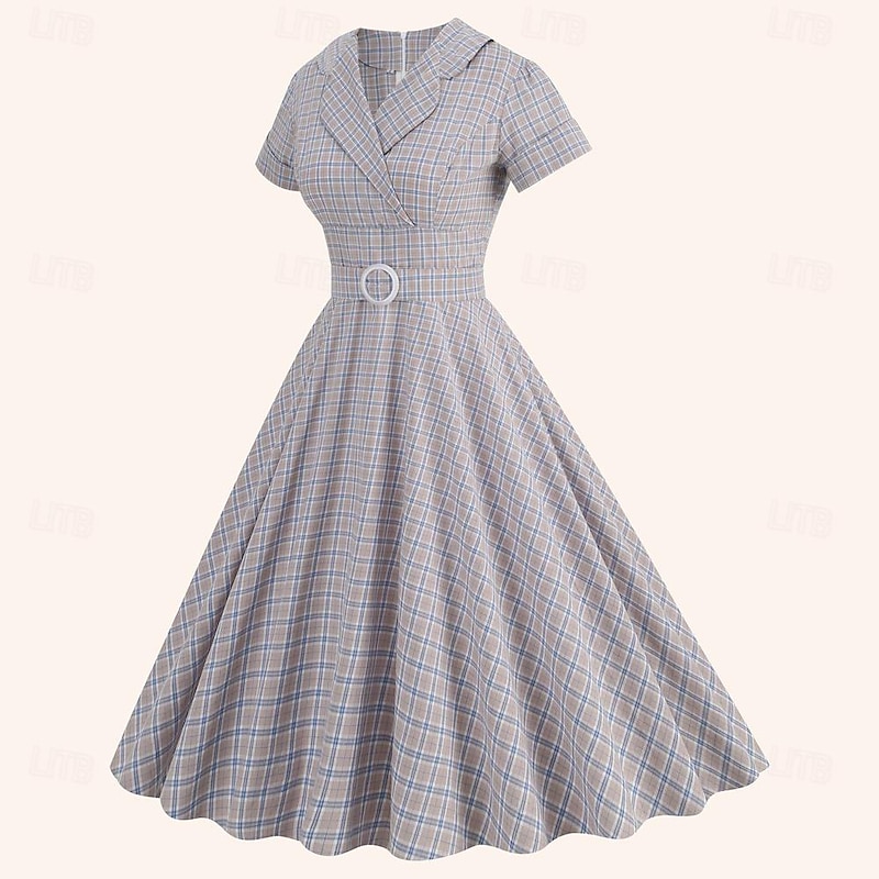 More information about Retro Vintage 1950s Rockabilly Midi Dress Swing Dress Flare Dress Plaid Checkered Checkered Gingham Fancy Dress Women's Masquerade Masquerade Date Bachelorette Party Adults' Dress Homecoming Dresses