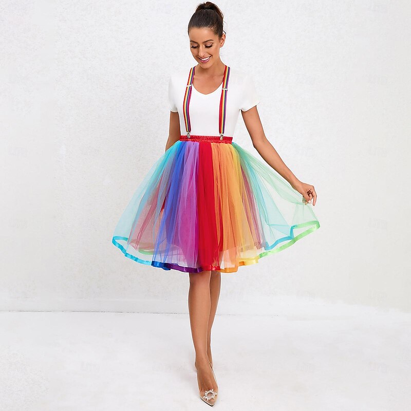 Rainbow Halloween Skirt Tutu Under Skirt LGBT LGBTQ Carnival Costume Gay Lesbian Adults' Women's Carnival Masquerade Pride Parade Pride Month straightforward Halloween Costumes Dress Up