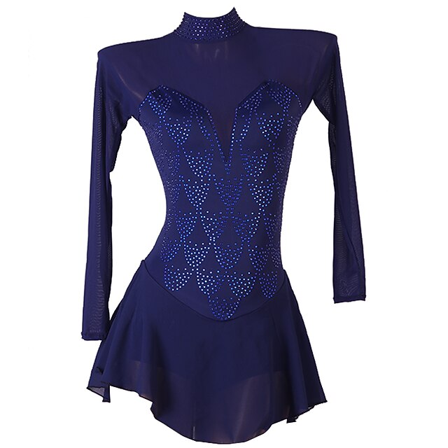 Why Choose Figure Skating Dress Women's Girls' Ice Skating Dress Dark Navy Patchwork Open Back Mesh High Elasticity Training Competition Skating Wear retro Long Sleeve Ice Skating Figure Skating?