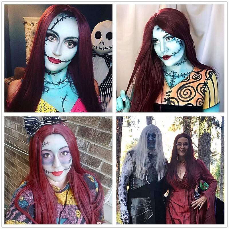 $22.99 - Mersi Wine Red Sally Wigs for Women Sally Wig Nightmare Before Christmas Costume 26'' Long Straight Synthetic Hair Wig for Carnival with Wig Cap S034WR 2025. Shop for cheap Movie Character Wigs online? Buy at lightinthebox.com on sale today!