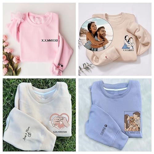 Fabric type: 80% Cotton, 20% PolyesterClosure type: Pull OnNeck style: Crew NeckSleeve type: Long Sleeve💝Roman Numerals Design: Featured with embroidered Roman numerals design, show your anniversary date on the sweatshirt, and show your love.💝Embroidery Process: Embroidered design on chest or cuffs, adds a touch of elegance, make the crew sweatshirt truly one-of-a-kind.💝Design Your Own Sweatshirt: Customize the date of couple anniversary or birthdate and text on the chest and cuffs of a round neck sweater.💝Multi-Color Option: 15 colors available, and you can choose your favorite embroidery color to customize your exceptional sweater.💝Occassion: Perfect gift for your girlfriend, boyfriend, mom, dad, friends for any Anniversary, Valentine's Day, Mother's Day, Father's Day, Christmas, Halloween, Thanksgiving, etc. Perfect for everyday use. superior materials and excellent craftsmanship ensure long-lasting durability.