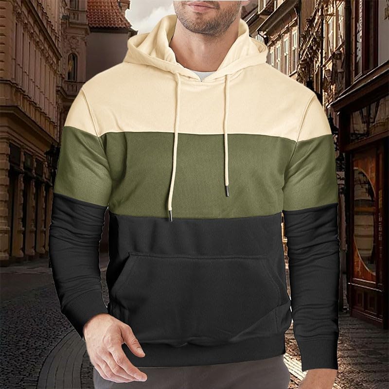 Hoodies for Men Color Block Pullover Fall Casual Long Sleeve Hooded Sweatshirt with Pocket