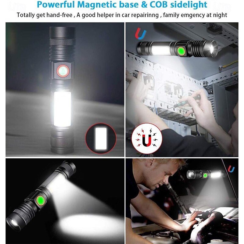 $11.99 - Rechargeable Flashlight Magnetic LED Flashlight with COB sidelight 1200 Lumen Super Bright LED, Waterproof Zoomable 4 Modes Best Flashlight for Camping 2025. Shop for cheap Tactical Flashlights online? Buy at lightinthebox.com on sale today!