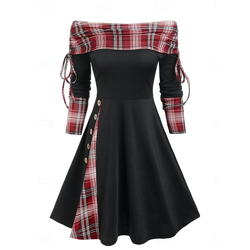 This Women's Mini Dress A Line Dress Casual Daily Regular Fit Plaid Long Sleeve Off Shoulder Black Red Navy Blue Royal Blue Spring Fall Winter combines elegant design with practical functionality. Every detail has been carefully considered to ensure you get the best possible experience. The remarkable construction means this product will serve you well for years to come.