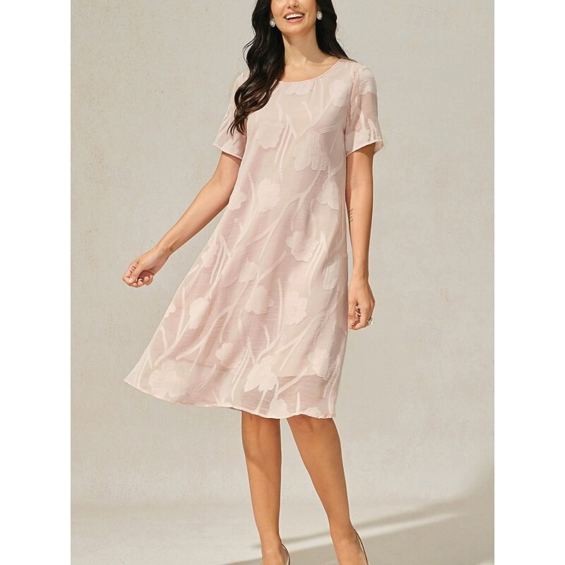 sizzling ! Women's Knee Length Dress Chiffon Dress Elegant Casual Loose Fit Floral Short Sleeve Crew Neck Pink Summer
