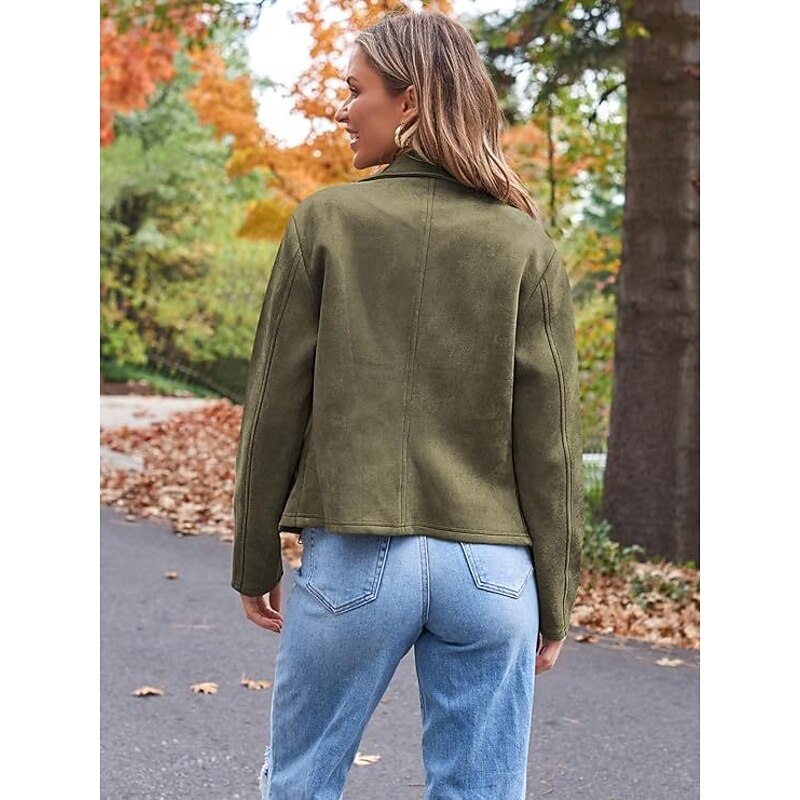 More information about Women's Casual Jacket snug cushy Zipper Casual Minimalism Solid Color Casual Daily Zipper Lapel Regular Fit Long Sleeve Outerwear Black Camel Brown Winter