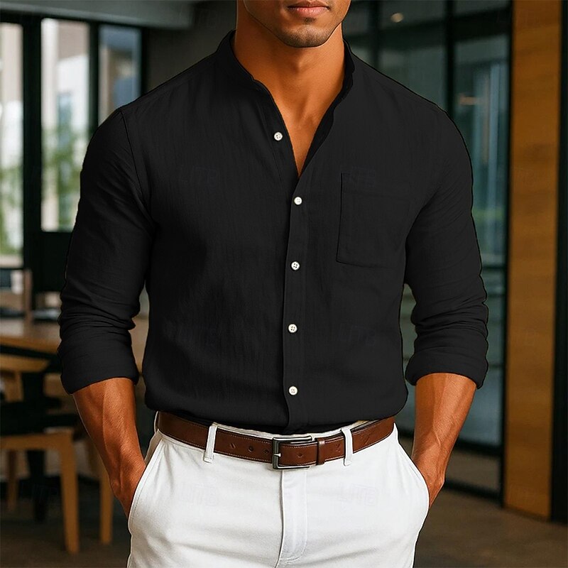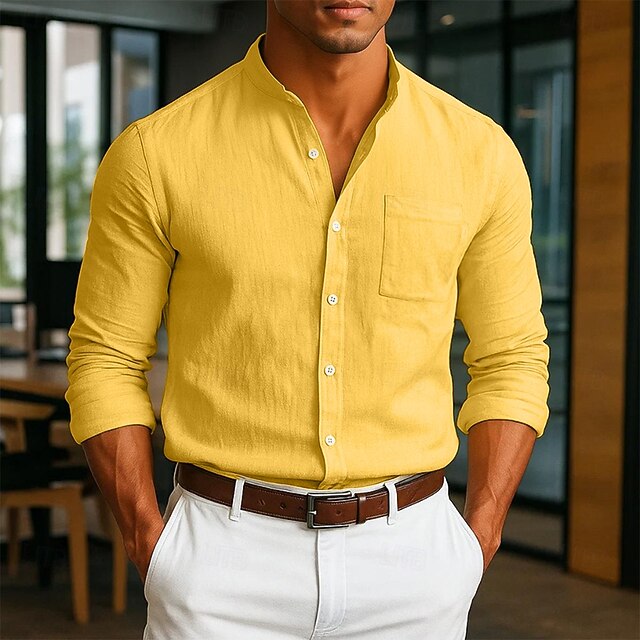 This Men's Shirt Linen Shirt Button Up Shirt Plain Vacation Casual Black White Yellow Navy Blue Long Sleeve Band Collar Summer Fall Clothing Apparel Pocket combines elegant design with practical functionality. Every detail has been carefully considered to ensure you get the best possible experience. The remarkable construction means this product will serve you well for years to come.