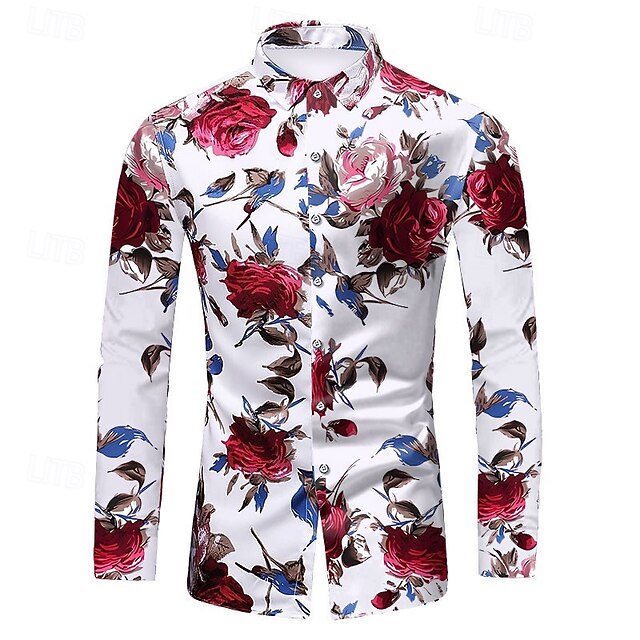 This Men's Floral Shirt Button Up Shirt Long Sleeve Vintage Designer Basic Valentine's Day Daily Going out Spring & Fall Collar Print Black Red Blue combines elegant design with practical functionality. Every detail has been carefully considered to ensure you get the finest possible experience. The finest construction means this product will serve you well for years to come.