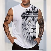 Men's Graphic Animal Lion Vest Top Sleeveless T Shirt for Men Sleeveless T shirt 3D Print Crew Neck Shirt Vacation Tropical Designer Party Daily Gym White Spring & Summer Clothing Apparel S M L XL
