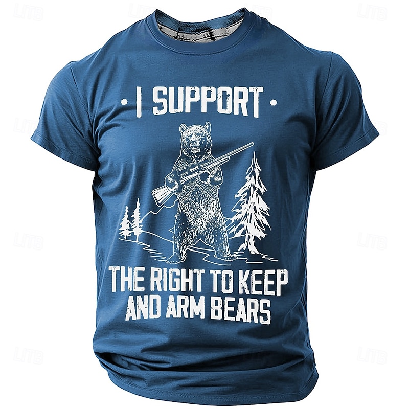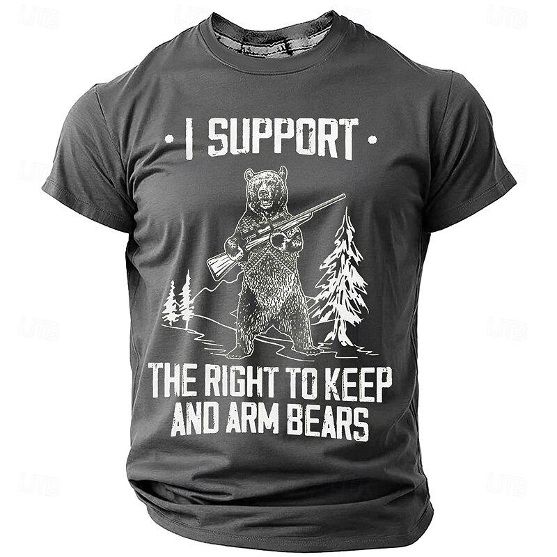 sizzling ! Men's Funny Graphic T-Shirt: I Support The Right To Keep And Arm Bears Pun Short Sleeve Tee