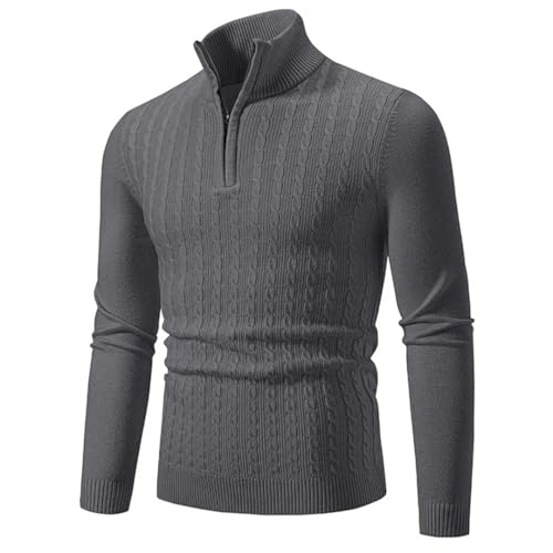 Men's Half Zipper Pullovers Solid Color Mock Neck Knitted Sweater Slim Fit toasty Sweaters