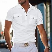 More information about Men's Polo Shirt Golf Shirt Work Casual Lapel Short Sleeve Basic recent-age Solid Color Patchwork Button Spring & Summer Regular Fit Black White Grey Polo Shirt
