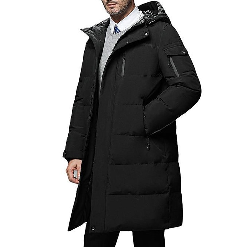 Highlights [Fabric and Material] : Crafted from high-quality polyester, this men's winter coat offers durability and functionality. The blend provides an insulated and sleek, modern look, perfect for cold weather protection. The coat's fabric ensures both warmth and a sophisticated appeal, making it a versatile wardrobe staple. [Fit and Silhouette] : Designed with a long-length silhouette, this coat provides exceptional coverage to shield against the harsh winter elements. Its tailored design maintains a contemporary yet classic aura that is suitable for various styles, from casual to formal. [Design Highlights] : This winter coat features a practical hood for additional protection against the elements. It includes multiple pockets, such as a zippered chest pocket and an arm pocket, offering ample space for essential items. The coatβs sleek design is complemented by a timeless, plain color pattern, available in black, gray, and green. [Occasions] : Ideally suited for daily wear, vacations, weekends, and casual outings, this coat effortlessly combines style and utility. Its versatile design caters to various occasions, ensuring you stay warm and fashionable whether you're on the go or enjoying a relaxed weekend. [Size Range] : Available in sizes M through 5XL, this coat accommodates a wide range of body types, providing a comfortable and tailored fit for everyone. Whether you seek a snug fit or a more relaxed silhouette, the range of sizes ensures you find your perfect match. Perfect for everyday use. superior materials and excellent craftsmanship ensure long-lasting durability.