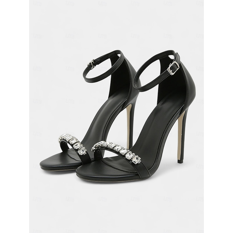 More information about Women's Black Rhinestone Embellished Stiletto Heel Sandals with Ankle Strap for Evening Parties and Gala Events