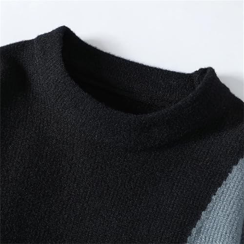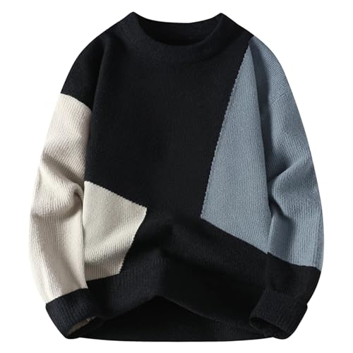 Men’S Japanese Style Patchwork Knit Pullover Round Neck Long Sleeve Slip-On Casual Splicing Knitted Jumper Tops