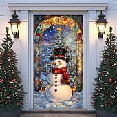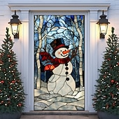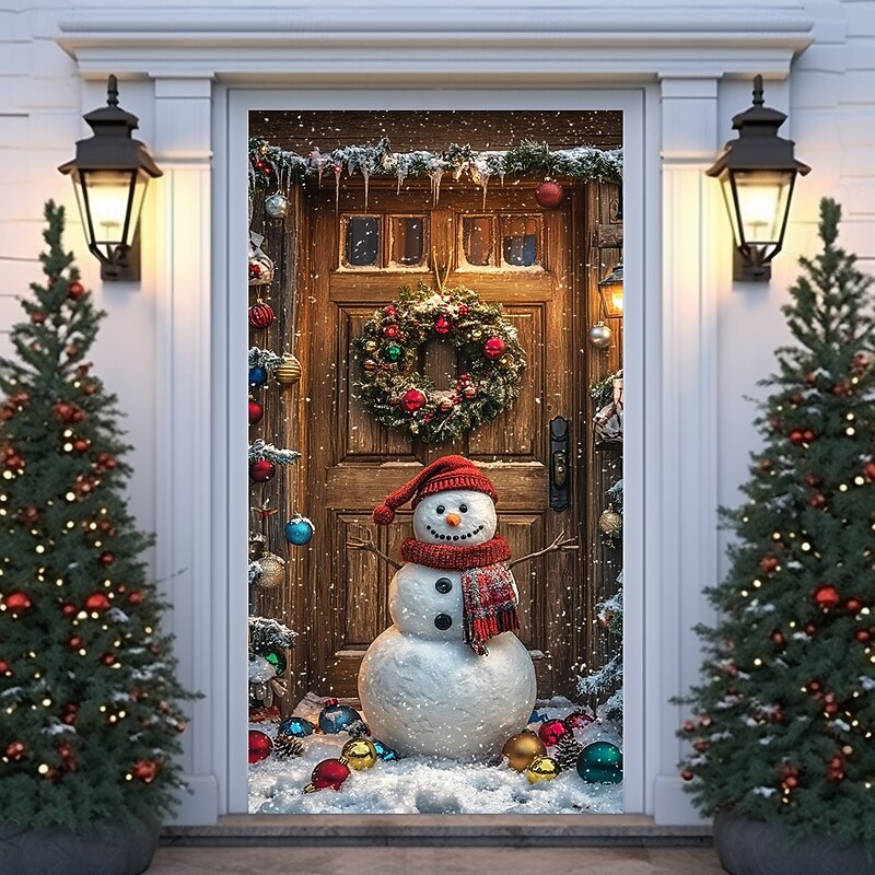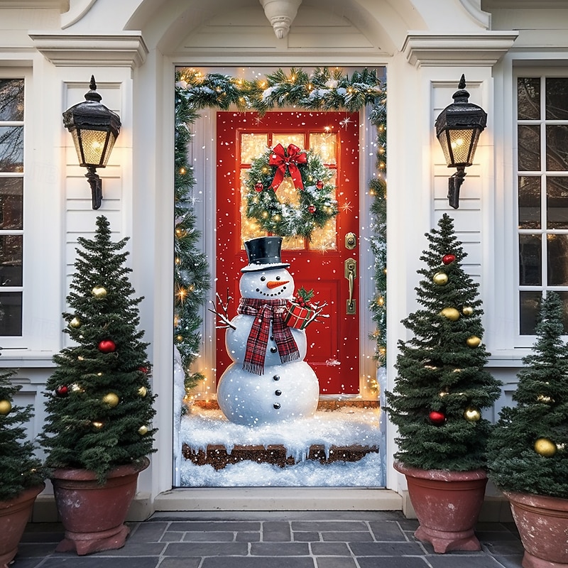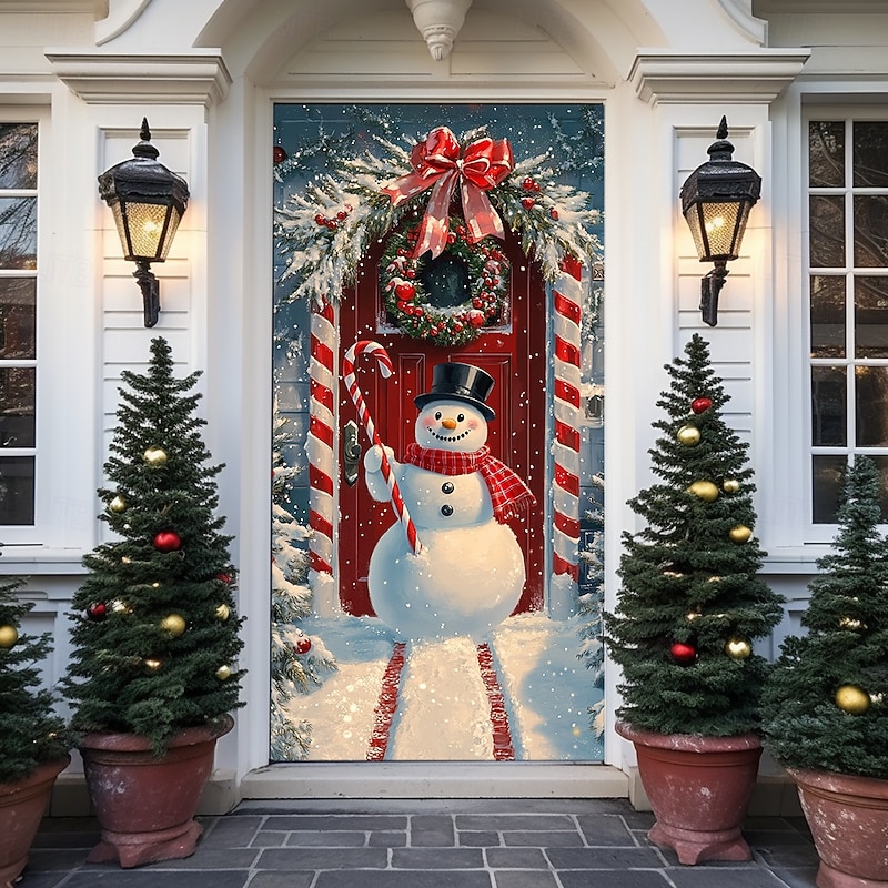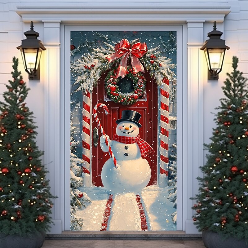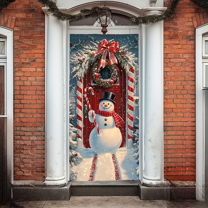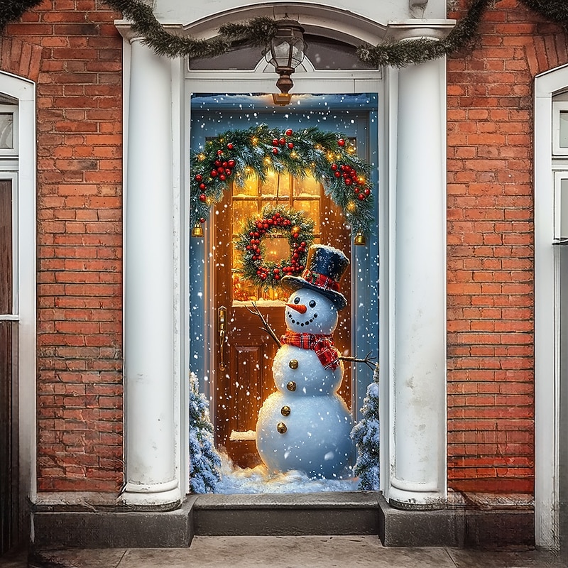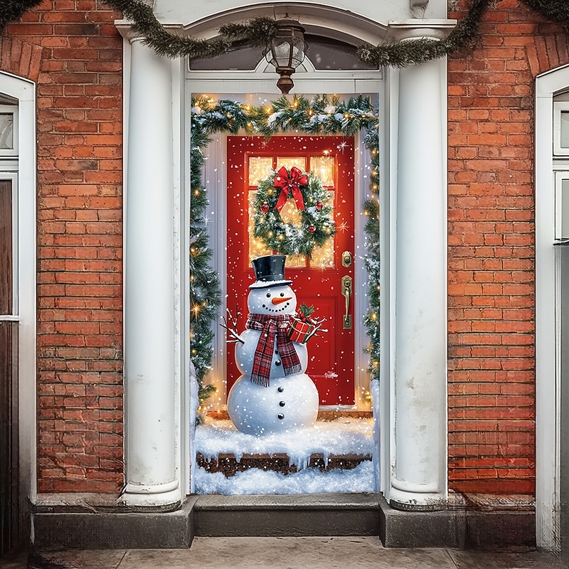 Christmas Door Decorations Door Covers Xmas Whimsical Snowmans Door Tapestry Door Curtain Decoration Backdrop Indoor/Outdoor Door Banner for Front Door Farmhouse Holiday Party Decor Supplies