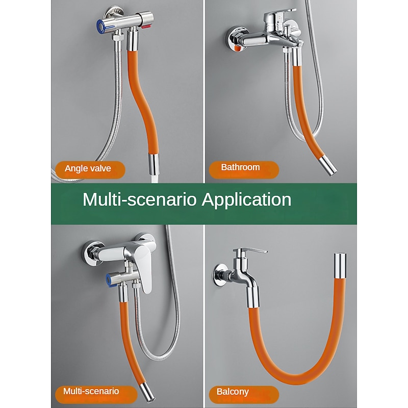 Highlights Premium Material: Food-grade silicone material, gentle and safe. The all-copper interface is sturdy and does not rust. Wide Application: 360° rotatable and bendable at will, with a wider scope of application, and can be used in bathrooms, kitchens, balconies, and outdoor courtyards. Water Saving: Filter design, rich foam prevents water splashing. It can save more water while increasing water pressure. One Size Fits Most: The international G 1/2" interface (2 cm), is suitable for most faucets. You will immediately enjoy the luxury of a towering showerhead. Simple installation: No other tools can be installed and removed. Please pay attention to the suitability of the required faucet. Note: Dear buyer, if the parcel is found to be badly damaged, please take a photo, reject it and contact us for resolution. Because of the size measurements are handmade, so there may be 1-3CM error. Please understand because of the light irradiation or computer display difference, so I can't guarantee photos and real color is 100% the same.