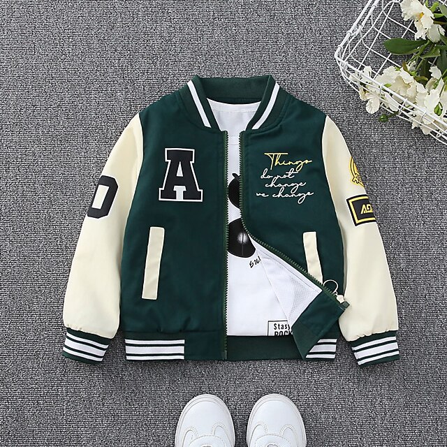 Why Choose Kids Boys' Baseball Jackets Outerwear Graphic Letter Long Sleeve Coat School Cool Daily Black Green Spring Fall 7-13 Years?