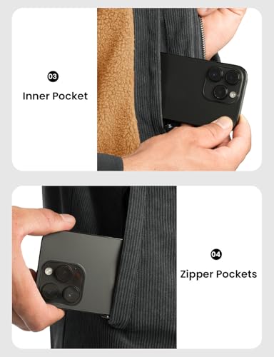 Rdruko Men's Corduroy Sherpa Fleece Lined Jacket Turn-Down Collar toasty Winter Jacket, Dark Grey, XL