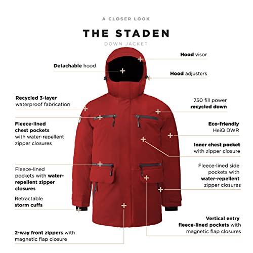 • WATERPROOF AND WINDPROOF RECYCLED FABRIC - The Staden mens winter jacket features a premium recycled 3-layer fabric that is gentle to the touch, windproof, and waterproof up to 10,000 mm.