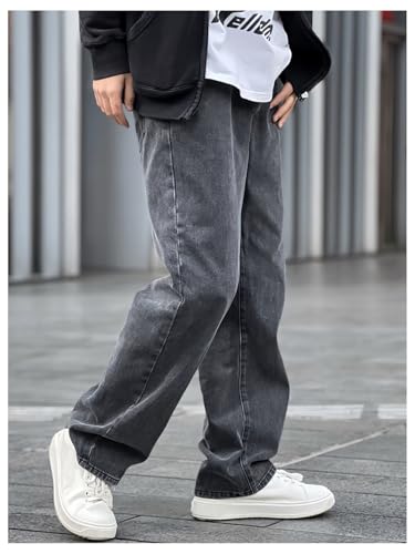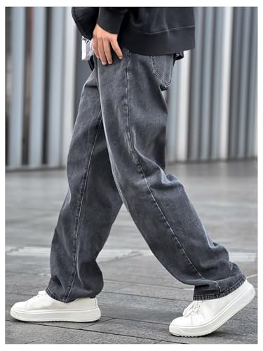 • Features: wide leg jeans for men, loose long denim pants, high waist, zipper fly, plain, pockets