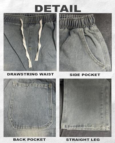 Men's Regular Fit Straight Leg Jeans Casual Drawstring Elastic Waist Denim Pants Lightweight Denim Trouser