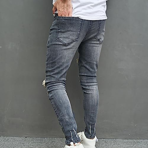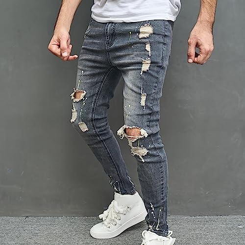 sizzling ! Jeans for Men Fashion Stretch Ripped Punk Style Pants Zipper Button Frayed Denim Pant with Pocket Going Out Work Jeans