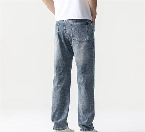 Mens Jeans Summer Elastic plush Straight Stretch Casual Denim Pants Business Thin Trousers