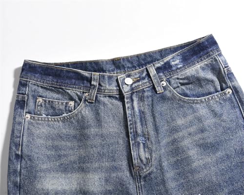 Fabric type: 100% CottonCare instructions: Machine WashOrigin: ImportedClosure type: ButtonMaterial: denim with distressed, washed finish. Durable fabric suitable for everyday wear. Ideal for casual, streetwear, and hip-hop styles. Comfortable and breathable for all-day wear.Design: Features exceptional distressed details, including frayed edges, holes, and graffiti prints. Available in a variety of washes, including blue, black, and khaki, with wide leg and baggy fits.Fit: Relaxed, loose fit perfect for casual wear. Available in various leg styles: straight, bootcut, flared, and wide leg. Designed to provide comfort and mobility throughout the day.Occasions: Ideal for casual wear, street style, and hip-hop fashion. Perfect for summer, fall, and spring. Can be worn for a variety of occasions including daily outings and parties.Care Instructions: Machine washable for easy maintenance. Follow care instructions to preserve the distressed look and keep the fabric soft. Avoid bleach to maintain color integrity. Perfect for everyday use. superior materials and excellent craftsmanship ensure long-lasting durability.