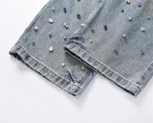 More information about Men's Vintage Gemstone Baggy Jeans, Straight Loose Ropa Hombre, High Street Washed Casual Denim