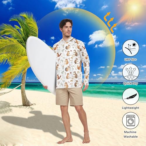 Funny Squirrel White Men's Sun Shirts Hoodies Long Sleeve Rash Guard Shirts UPF 50+ Sport Shirt S