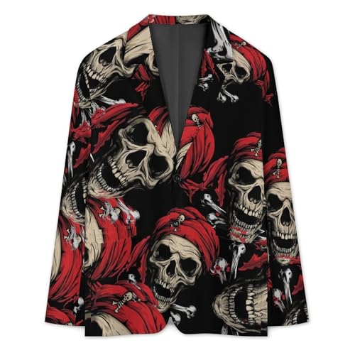 sizzling ! Jolly Roger Piratees Skull Mens Casual Blazer Button Suit Jacket Lightweight Sport Coat for Work Business